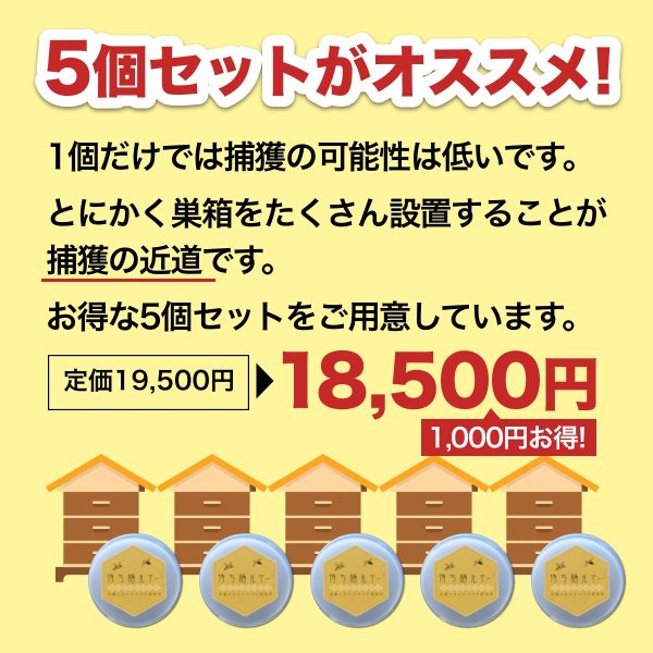 キンリョウヘンの誘引成分を分析し、化学的に合成された誘引剤です。巣箱に取り付けて、ニホンミツバチの分蜂群れの誘引を行います。