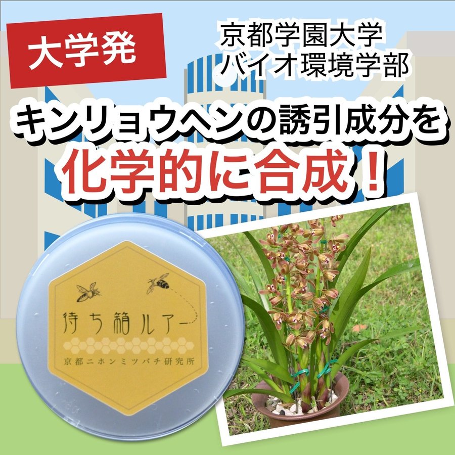キンリョウヘンの誘引成分を分析し、化学的に合成された誘引剤です。巣箱に取り付けて、ニホンミツバチの分蜂群れの誘引を行います。待ち箱ルアーを動画で紹介しています。約7分の動画です。